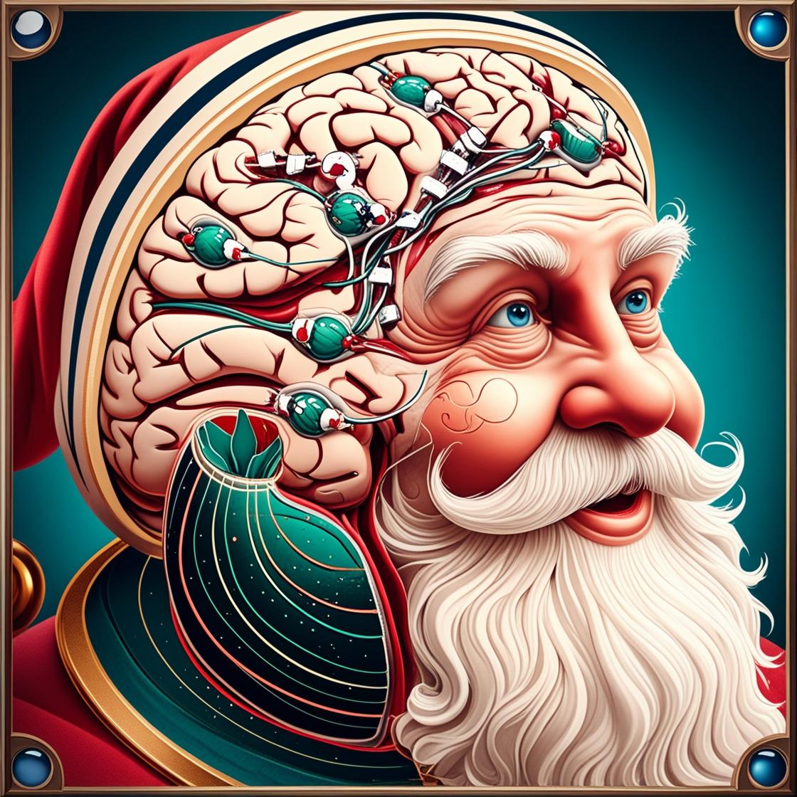 Helmi sat by Santa’s armchair, her brow furrowed as his trembling hands gripped the armrests. His iconic red hat wobbled with every shake, and his foot tapped the floor, sending ornaments rattling. “It’s getting worse,” she murmured. The doctor elves had diagnosed him with a magical form of tremor, worsened by holiday stress. The digital brain pacemaker they tried faltered, lagging behind Santa’s magic-infused neural rhythms and draining its battery far too quickly. “This won’t do,” Helmi muttered, setting the device aside.